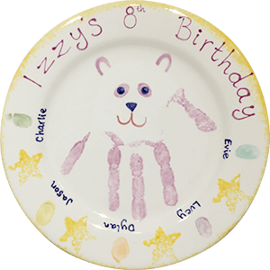 The Fun Pots Party Plate is our gift to the birthday child. Signed by all the children who attend the party, it makes a lovely memento to remember your little one's special day.